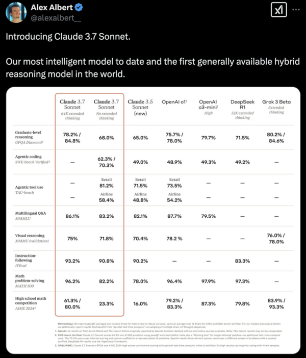 [CNMO科技消息]2月25日,根据新智元报道,Anthropic祭出首个混合推理Claude3.7Sonnet,堪称扩展思考模式的最强模型。在最新编码测试中,新模型比o3-mini、DeepSeekR1要强上不少,堪称AI编码领域新王者。