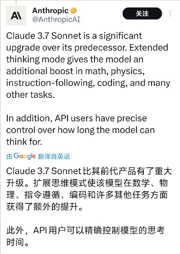 根据介绍,Claude3.7Sonnet是Anthropic推出的首款混合推理模型,也是Claude系列中迄今为止最智能的模型,几乎能够及时响应,并进行可扩展的、逐步的思考。
